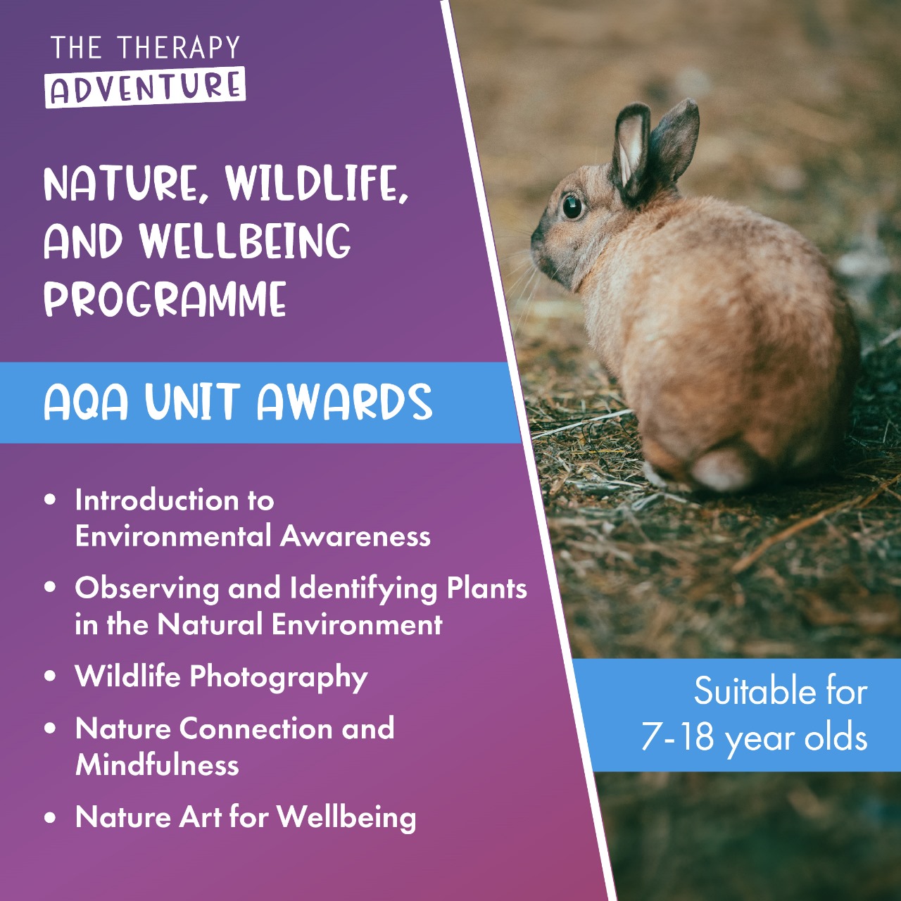 Our Nature, Wildlife and Wellbeing AQA Unit Programme, is suitable for young people aged 7-18, including neurodiverse young people and those with SEND or Mental Health Needs.