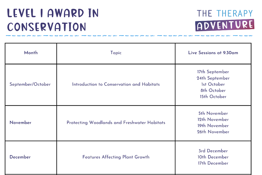 The Therapy Adventure deliver the Open Awards Level 1 Award in Conservation, a recognised qualification equivalent to a GCSE.