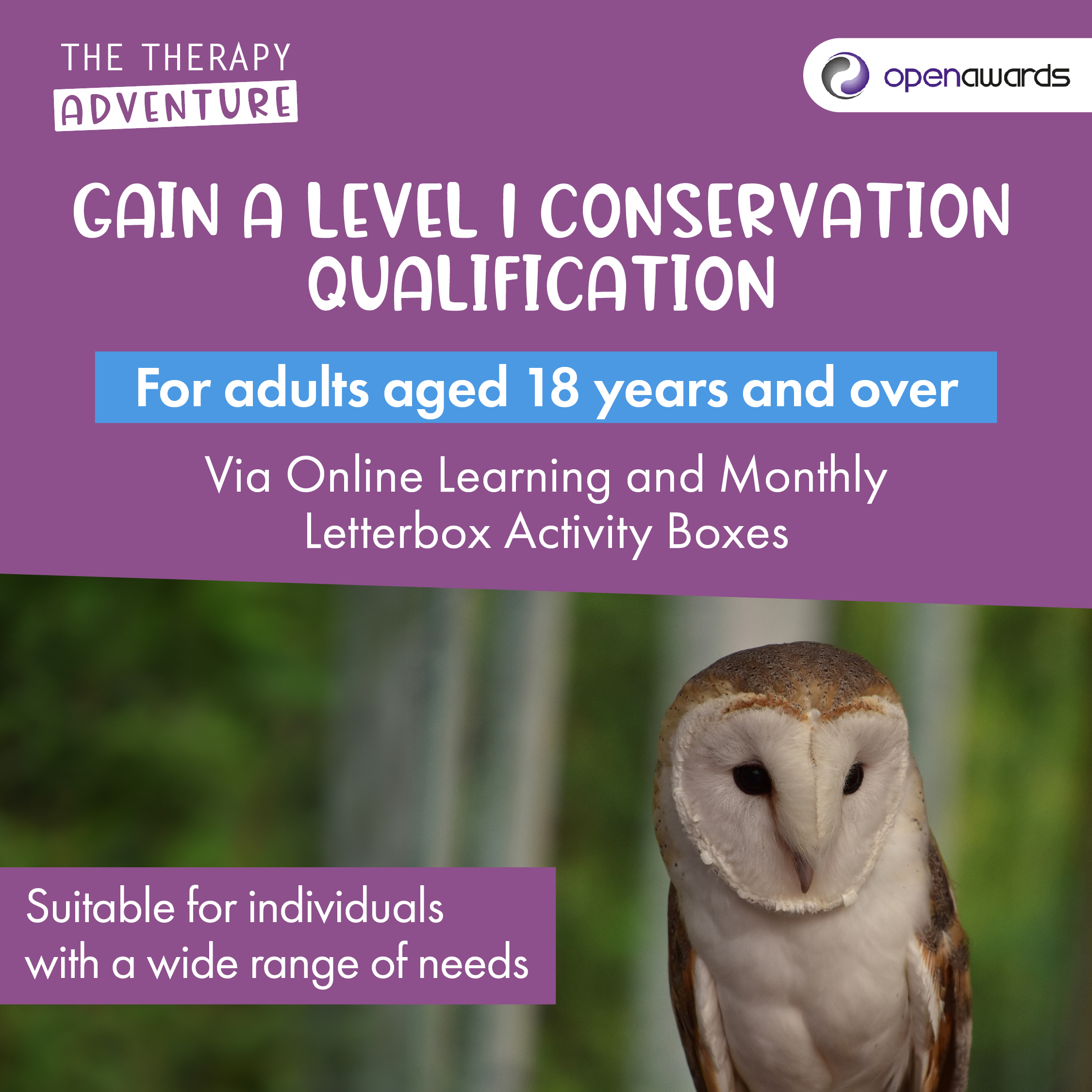 The Therapy Adventure deliver the Open Awards Level 1 Award in Conservation, a recognised qualification equivalent to a GCSE.